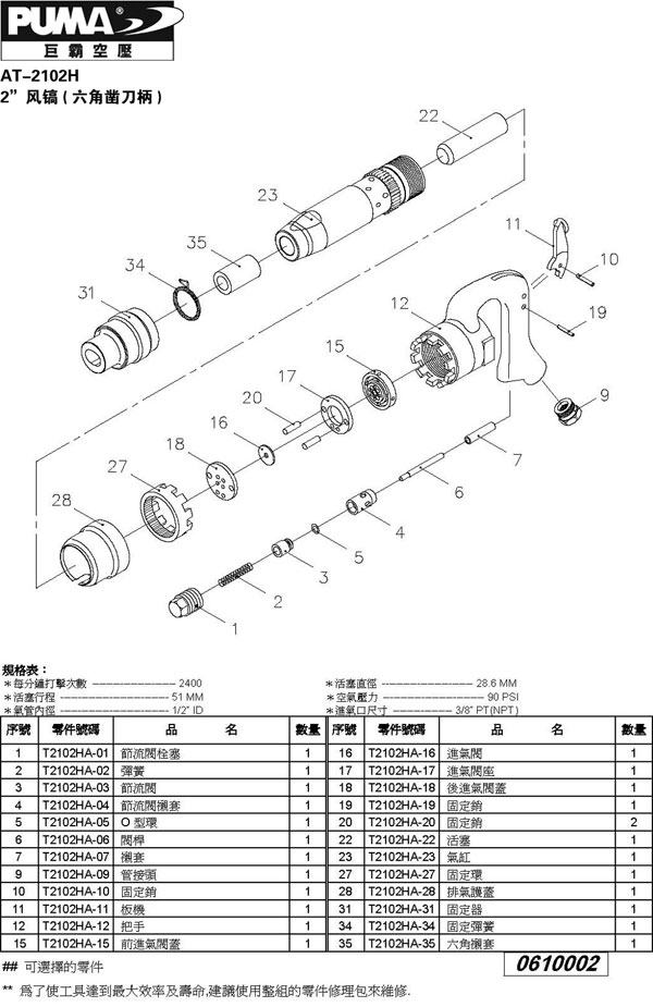 1.如阁下对AT-2102 2"风镐价格和使用方法等有需求时,我们的客服人员将为阁下找到解决AT-2102 2"风镐问题的方法。