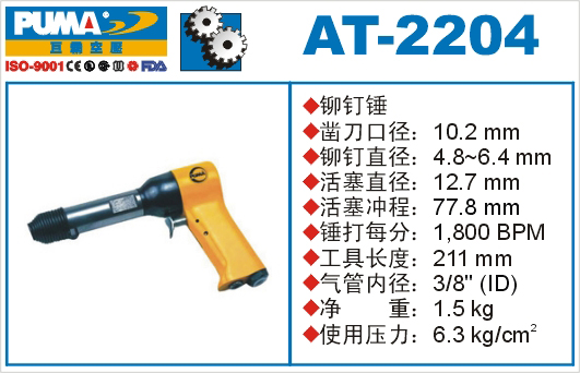 1.如阁下对AT-2204风动铆钉锤价格和使用方法等有需求时,我们的客服人员将为阁下找到解决AT-2204风动铆钉锤问题的方法。