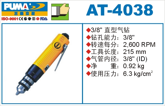 1.如阁下对AT-4038 巨霸直型气动钻价格和使用方法等有需求时,我们的客服人员将为阁下找到解决AT-4038 巨霸直型气动钻问题的方法。