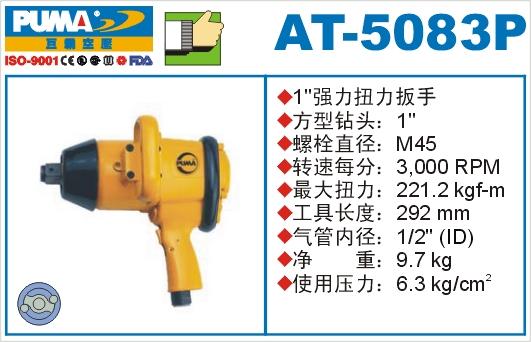 1.如阁下对AT-5083P巨霸气动扳手【停产】【替代型号AT-5186P】价格和使用方法等有需求时,我们的客服人员将为阁下找到解决AT-5083P巨霸气动扳手【停产】【替代型号AT-5186P】问题的方法。