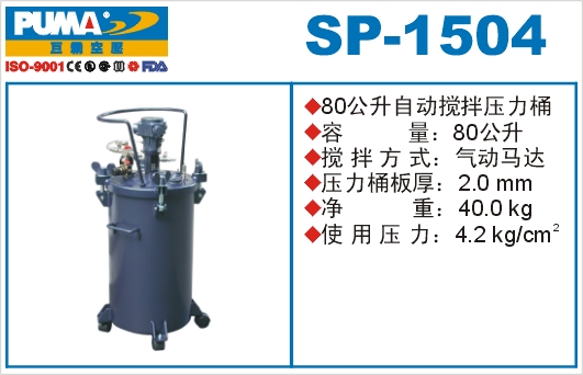 1.如阁下对SP-1504 80公升自动搅拌压力桶价格和使用方法等有需求时,我们的客服人员将为阁下找到解决SP-1504 80公升自动搅拌压力桶问题的方法。