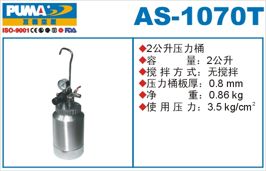 1.如阁下对AS-1070T 2公升压力桶价格和使用方法等有需求时,我们的客服人员将为阁下找到解决AS-1070T 2公升压力桶问题的方法。