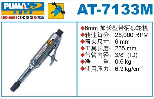 1.如阁下对AT-7133M 巨霸6mm加长型带柄砂轮机价格和使用方法等有需求时,我们的客服人员将为阁下找到解决AT-7133M 巨霸6mm加长型带柄砂轮机问题的方法。