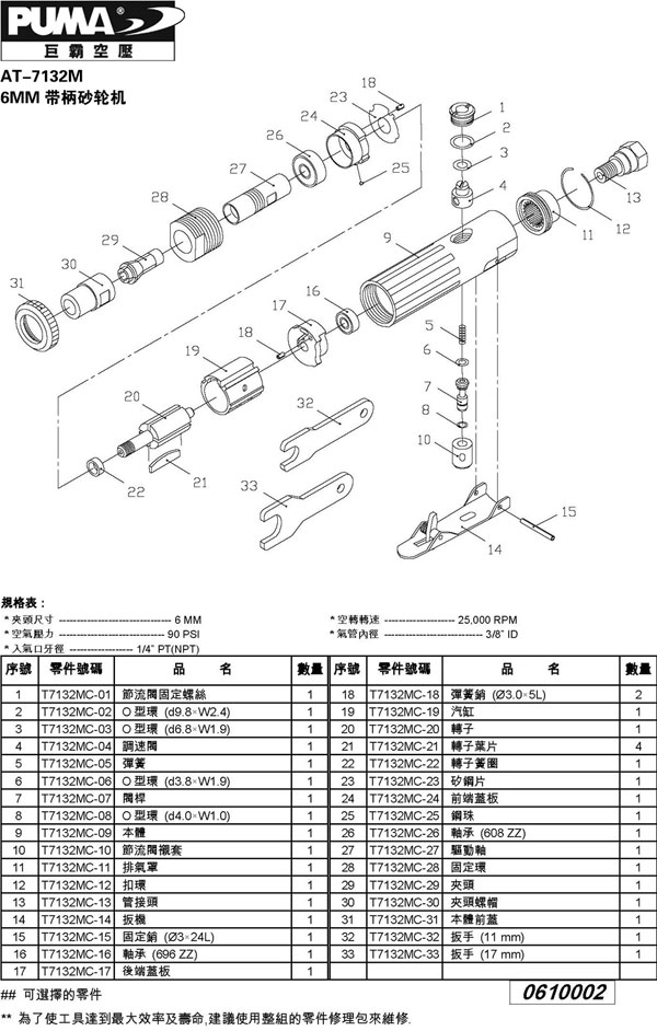 3.我们将对AT-7132M 巨霸6mm直角带柄砂轮机提供免费送检,阁下在签收快递前请详细核查AT-7132M 巨霸6mm直角带柄砂轮机资料信息。