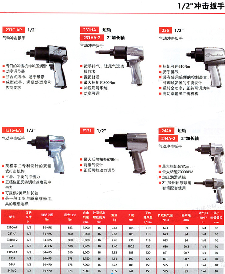 1.如阁下对英格索兰236气动冲击扳手(HVY重量级工具)价格和使用方法等有需求时,我们的客服人员将为阁下找到解决英格索兰236气动冲击扳手(HVY重量级工具)问题的方法。
