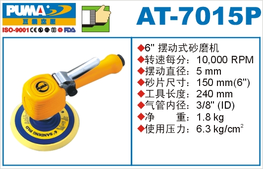 1.如阁下对AT-7015P 6″摆动式气动砂磨机价格和使用方法等有需求时,我们的客服人员将为阁下找到解决AT-7015P 6″摆动式气动砂磨机问题的方法。