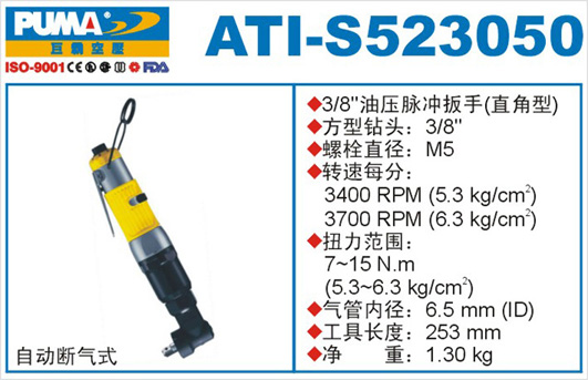 巨霸自动断气式3/8"油压脉冲扳手(直角型)ATI-S523050