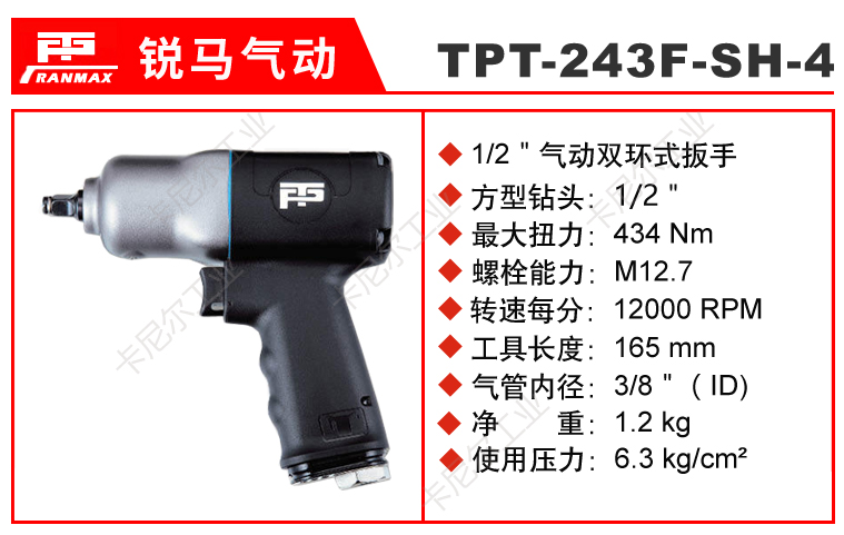 1.如阁下对TPT-243F-SH-4 台湾锐马1/2"风动扳手价格和使用方法等有需求时,我们的客服人员将为阁下找到解决TPT-243F-SH-4 台湾锐马1/2"风动扳手问题的方法。