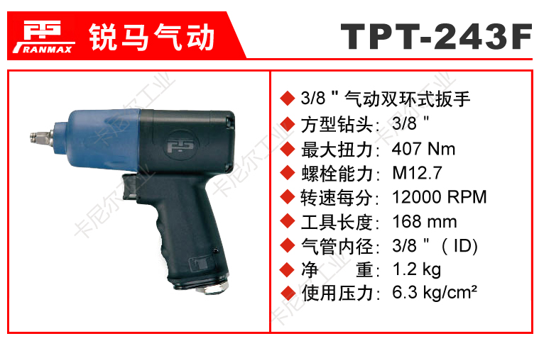 1.如阁下对TPT-243F 台湾锐马3/8"风动扳手价格和使用方法等有需求时,我们的客服人员将为阁下找到解决TPT-243F 台湾锐马3/8"风动扳手问题的方法。