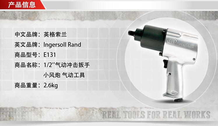 3.我们将对英格索兰 E131 气动冲击扳手提供免费送检,阁下在签收快递前请详细核查英格索兰 E131 气动冲击扳手资料信息。