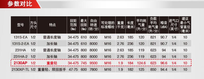新型2130AP-2拥有您期望中的IR系列冲击扳手所具有的一切性能和特点。这种扳手的特点是带有功率强大的双锤机构及新的复合材料外壳,高超的人机工程学设计,而且整个工具重量很轻。