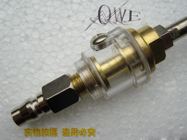 3.一般传统空压机,空压机压缩出来气源大部份气体内含有水份,还有空压机活塞带出的空压机内润滑油,若没有使用油水分离器,水与油随气进入气动工具,会使风叶片粘住,工具一起动会甩不开叶片,会有可能不会起动,若能起动便成扭力不足,一定要注意从后进气口注入气动油再按气动工具空转几秒便可,扭力可恢复正常