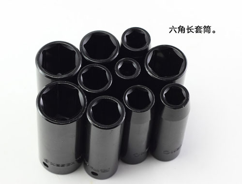 表面黑色处理,。铬钒钢材质(优质套筒都是使用这种材料的),质量很好,适合气动工具。