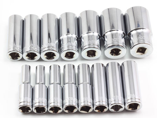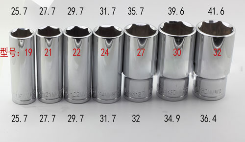 部分六角深度如下(套筒总长度全部都是78毫米):8(22.5mm),10(30mm),12(30mm),13(26mm),14(36.5mm),17(36mm),19(38mm),21(39mm),22(39mm)
