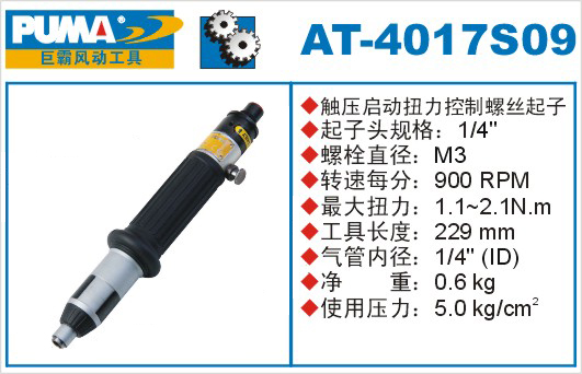 1.如阁下对AT-4017S09 巨霸枪型扭力控制螺丝起子价格和使用方法等有需求时,我们的客服人员将为阁下找到解决AT-4017S09 巨霸枪型扭力控制螺丝起子问题的方法。