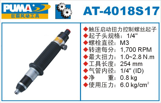 1.如阁下对AT-4018S17 巨霸枪型扭力控制螺丝起子价格和使用方法等有需求时,我们的客服人员将为阁下找到解决AT-4018S17 巨霸枪型扭力控制螺丝起子问题的方法。