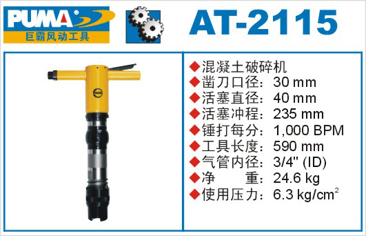 1.如阁下对AT-2115气动破碎机价格和使用方法等有需求时,我们的客服人员将为阁下找到解决AT-2115气动破碎机问题的方法。