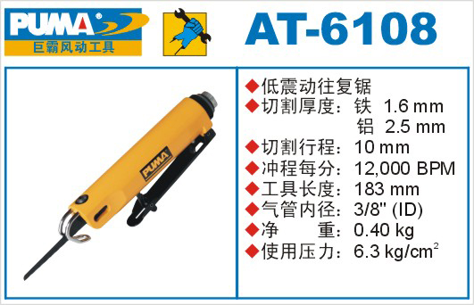 1.如阁下对AT-6108气动往复锯价格和使用方法等有需求时,我们的客服人员将为阁下找到解决AT-6108气动往复锯问题的方法。