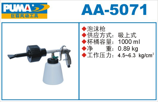1.如阁下对AA-5071气动泡沫枪价格和使用方法等有需求时,我们的客服人员将为阁下找到解决AA-5071气动泡沫枪问题的方法。