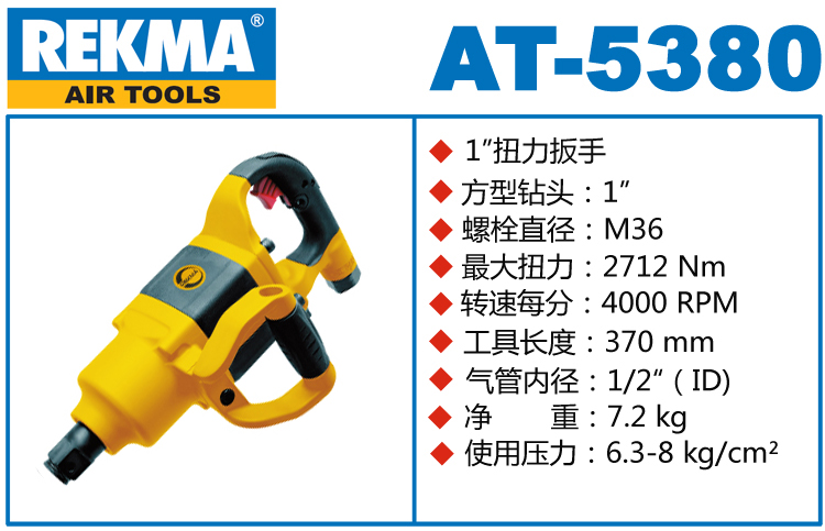 3.我们将对REKMA AT-5380 锐克马气动扳手提供免费送检,阁下在签收快递前请详细核查REKMA AT-5380 锐克马气动扳手资料信息。