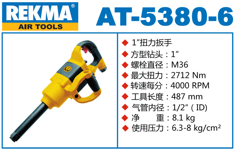 1.如阁下对REKMA AT-5380-6 锐克马气动扳手价格和使用方法等有需求时,我们的客服人员将为阁下找到解决REKMA AT-5380-6 锐克马气动扳手问题的方法。