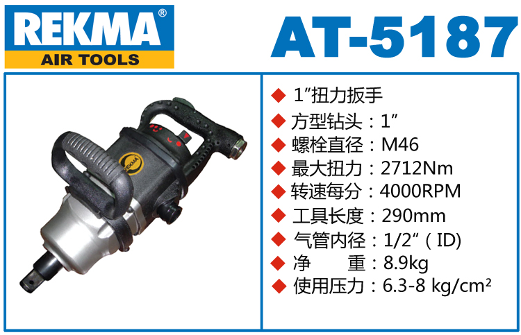 1.如阁下对REKMA AT-5187 锐克马气动扳手价格和使用方法等有需求时,我们的客服人员将为阁下找到解决REKMA AT-5187 锐克马气动扳手问题的方法。