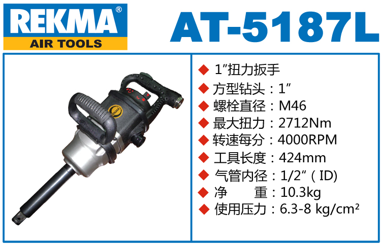 1.如阁下对REKMA AT-5187L 锐克马气动扳手价格和使用方法等有需求时,我们的客服人员将为阁下找到解决REKMA AT-5187L 锐克马气动扳手问题的方法。