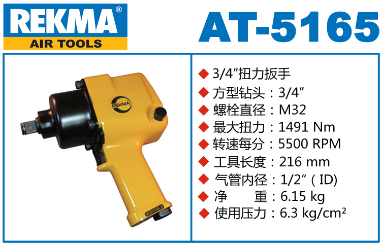 1.如阁下对REKMA AT-5165 锐克马气动扳手价格和使用方法等有需求时,我们的客服人员将为阁下找到解决REKMA AT-5165 锐克马气动扳手问题的方法。
