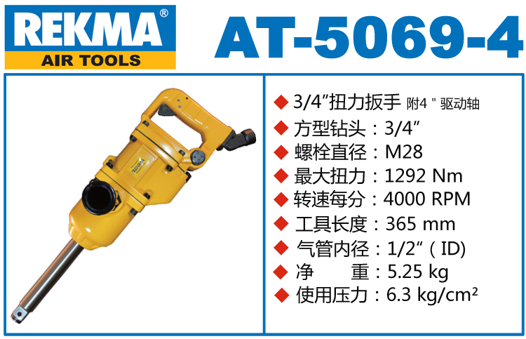 1.如阁下对REKMA AT-5069-4 锐克马气动扳手价格和使用方法等有需求时,我们的客服人员将为阁下找到解决REKMA AT-5069-4 锐克马气动扳手问题的方法。