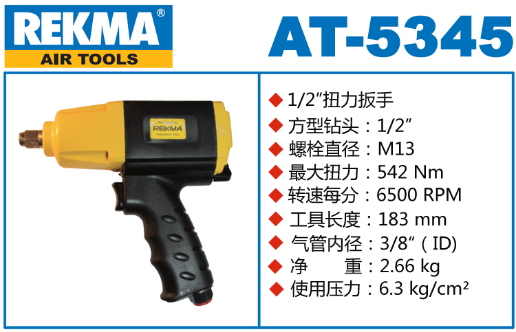 1.如阁下对REKMA AT-5345 锐克马气动扳手价格和使用方法等有需求时,我们的客服人员将为阁下找到解决REKMA AT-5345 锐克马气动扳手问题的方法。