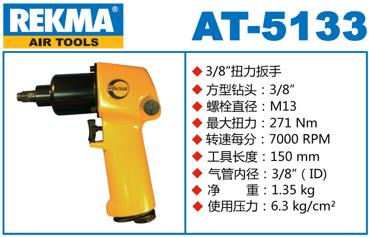 1.如阁下对REKMA AT-5133 锐克马气动扳手价格和使用方法等有需求时,我们的客服人员将为阁下找到解决REKMA AT-5133 锐克马气动扳手问题的方法。