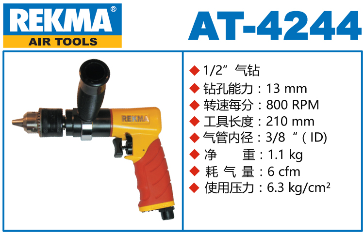 1.如阁下对REKMA AT-4244 锐克马气动钻(单转)价格和使用方法等有需求时,我们的客服人员将为阁下找到解决REKMA AT-4244 锐克马气动钻(单转)问题的方法。