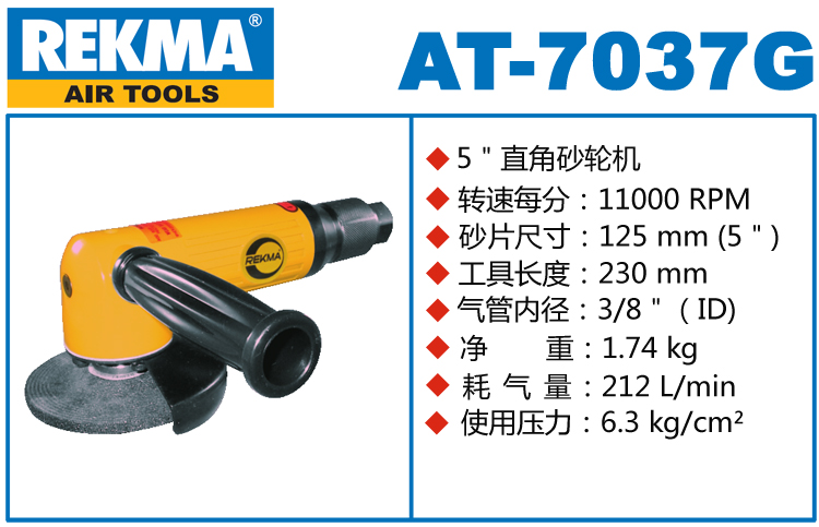 1.如阁下对REKMA AT-7037G 锐克马气动砂轮机价格和使用方法等有需求时,我们的客服人员将为阁下找到解决REKMA AT-7037G 锐克马气动砂轮机问题的方法。