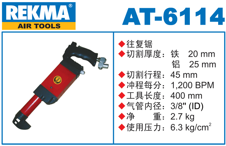 1.如阁下对REKMA AT-6114 锐克马气动气锯价格和使用方法等有需求时,我们的客服人员将为阁下找到解决REKMA AT-6114 锐克马气动气锯问题的方法。