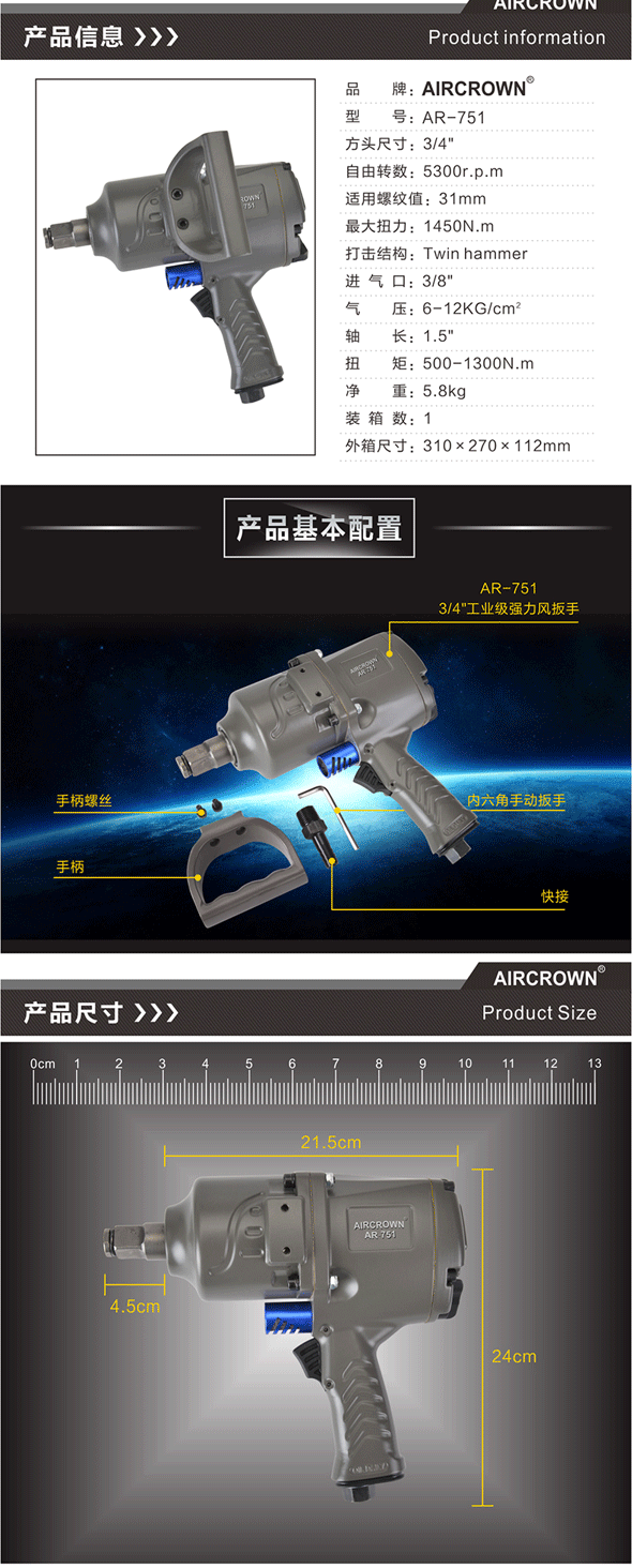3.我们将对正茂气动工具 AR-751大扭力气动扳手提供免费送检,阁下在签收快递前请详细核查正茂气动工具 AR-751大扭力气动扳手资料信息。