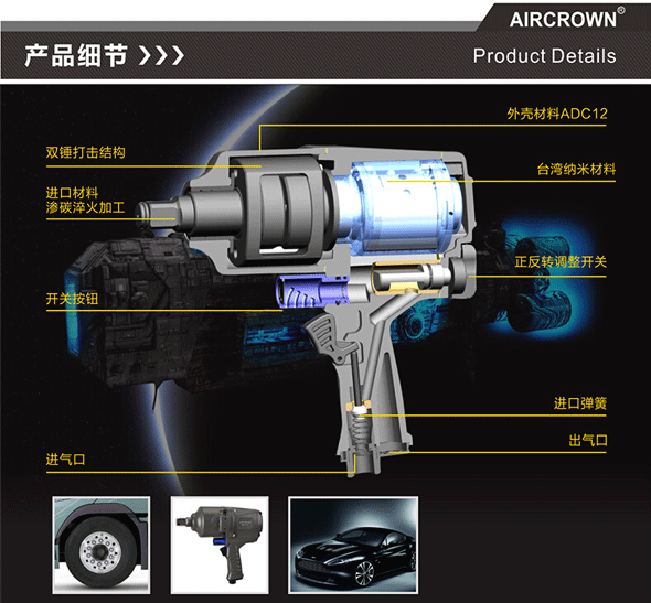 卡尼尔工业设备提供气动扳手及其他各种进口品牌(博士气动工具、巨霸气动工具、黑牛气动工具、日本信浓气动工具、台湾西瑞气动工具)的气动工具系列,工具种类齐全,无论您是要选购气动扳手、气动研磨机、气动刻磨机、气动砂轮机、气动吹尘枪、气动铆钉枪、气动钻、锤、气动拉帽枪等,我们都能为您推荐最合适您的那一款,欢迎选购!卡尼尔用心,用户放心!