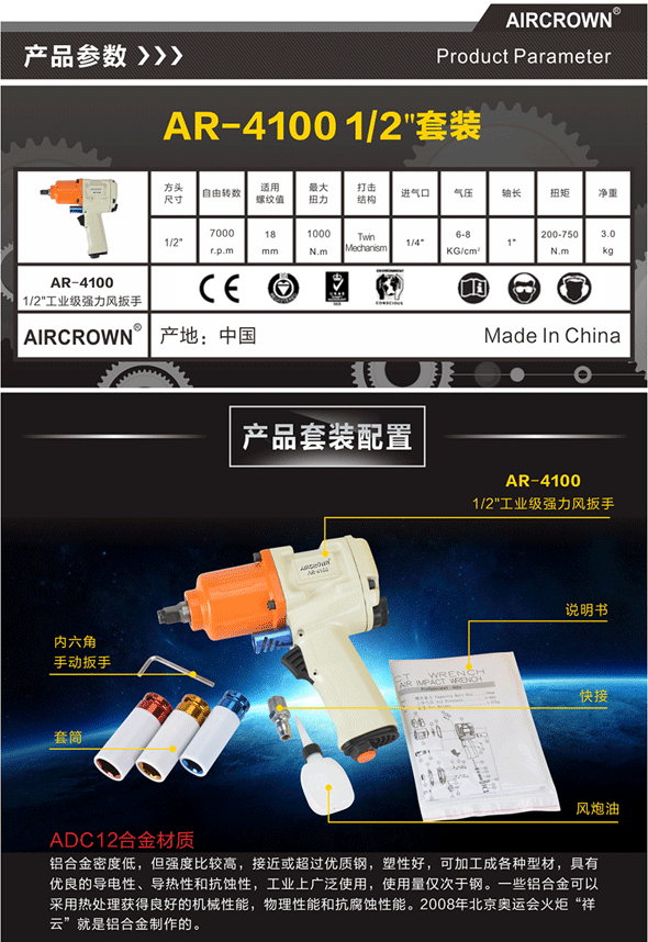 3.我们将对正茂气动工具 AR-4100强力拆卸大扭力小风炮气动扳手提供免费送检,阁下在签收快递前请详细核查正茂气动工具 AR-4100强力拆卸大扭力小风炮气动扳手资料信息。