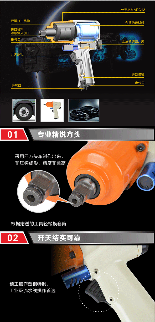 卡尼尔工业设备提供气动扳手及其他各种进口品牌(博士气动工具、巨霸气动工具、黑牛气动工具、日本信浓气动工具、台湾西瑞气动工具)的气动工具系列,工具种类齐全,无论您是要选购气动扳手、气动研磨机、气动刻磨机、气动砂轮机、气动吹尘枪、气动铆钉枪、气动钻、锤、气动拉帽枪等,我们都能为您推荐最合适您的那一款,欢迎选购!卡尼尔用心,用户放心!