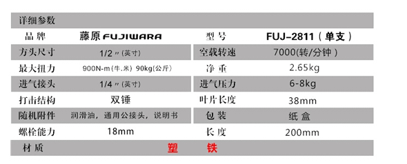 3.我们将对日本藤原FUJ-2811气动扳手强力小风炮单支提供免费送检,阁下在签收快递前请详细核查日本藤原FUJ-2811气动扳手强力小风炮单支资料信息。