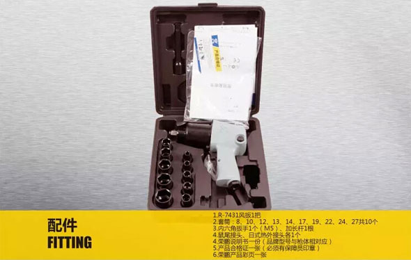 3.我们将对R-7807荣鹏气动工具风扳套装提供免费送检,阁下在签收快递前请详细核查R-7807荣鹏气动工具风扳套装资料信息。