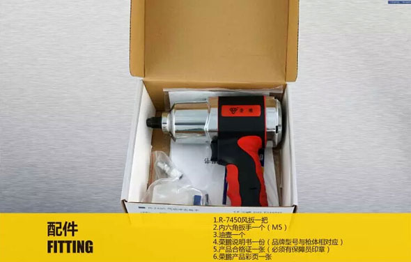 3.我们将对R-7450荣鹏气动工具气动扳手提供免费送检,阁下在签收快递前请详细核查R-7450荣鹏气动工具气动扳手资料信息。