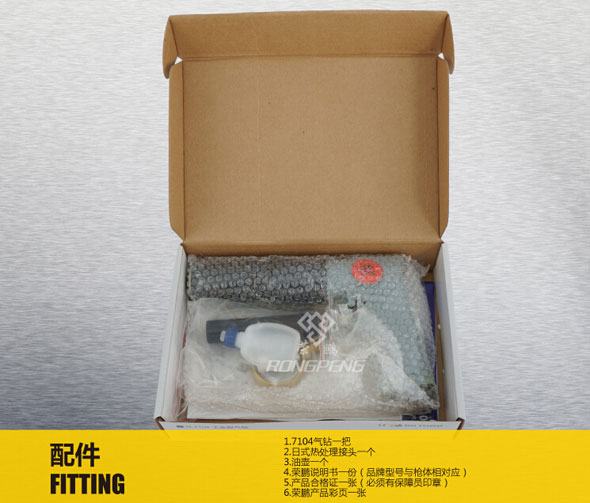 3.我们将对R-7104荣鹏气动工具气动钻提供免费送检,阁下在签收快递前请详细核查R-7104荣鹏气动工具气动钻资料信息。