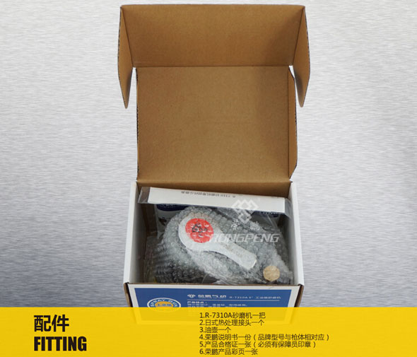 3.我们将对R-7310A荣鹏气动工具气动打磨机提供免费送检,阁下在签收快递前请详细核查R-7310A荣鹏气动工具气动打磨机资料信息。