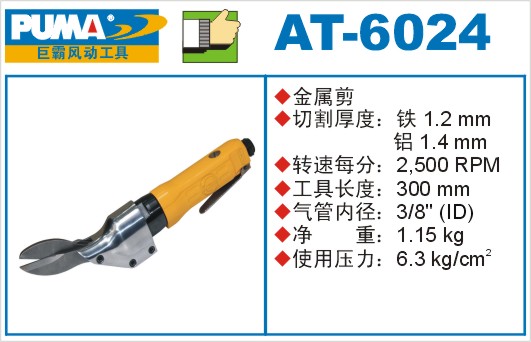 1.如阁下对AT-6024 风动金属剪价格和使用方法等有需求时,我们的客服人员将为阁下找到解决AT-6024 风动金属剪问题的方法。