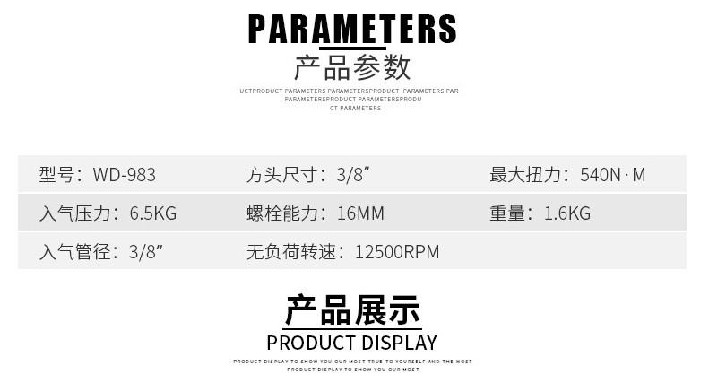 1.如阁下对台湾稳汀气动工具WD-983 3/8进口气动扳手、分炮价格和使用方法等有需求时,我们的客服人员将为阁下找到解决台湾稳汀气动工具WD-983 3/8进口气动扳手、分炮问题的方法。