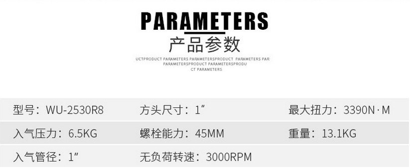 3.我们将对稳汀大扭力风炮WU-2530R8 1寸方头单锤结构气动提供免费送检,阁下在签收快递前请详细核查稳汀大扭力风炮WU-2530R8 1寸方头单锤结构气动资料信息。