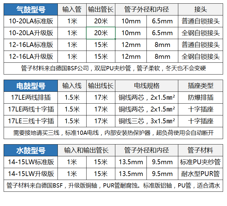 管质:高端PU夹纱管,原料采用德国BASF材料。高柔韧性。(PU包纱管是双层的,耐高压),市场同类低价产品采用的是国产低端材料。管子成本相差20块左右。