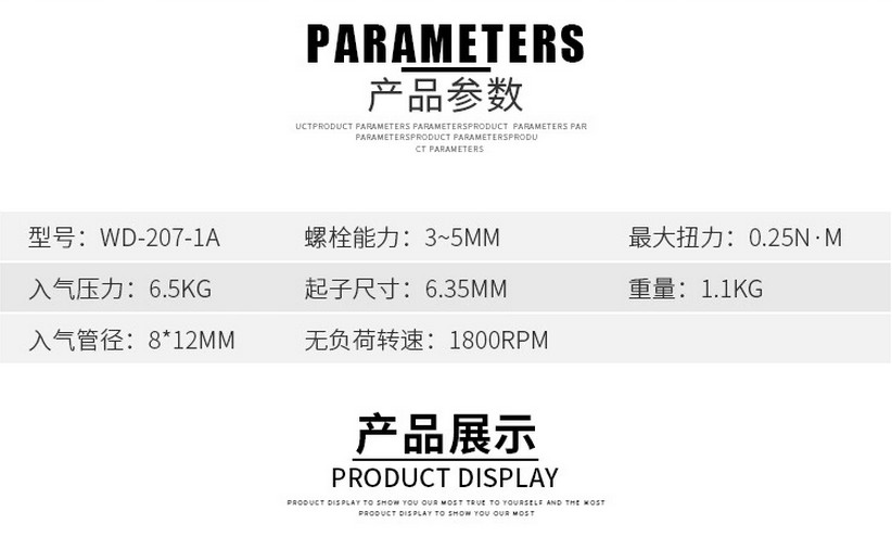 1.如阁下对台湾稳汀WD-207-1A气动螺丝刀起子风批可调式起子价格和使用方法等有需求时,我们的客服人员将为阁下找到解决台湾稳汀WD-207-1A气动螺丝刀起子风批可调式起子问题的方法。
