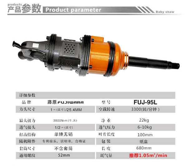 1.如阁下对藤原FUJ-95l新款大风炮大扭力1寸风炮价格和使用方法等有需求时,我们的客服人员将为阁下找到解决藤原FUJ-95l新款大风炮大扭力1寸风炮问题的方法。