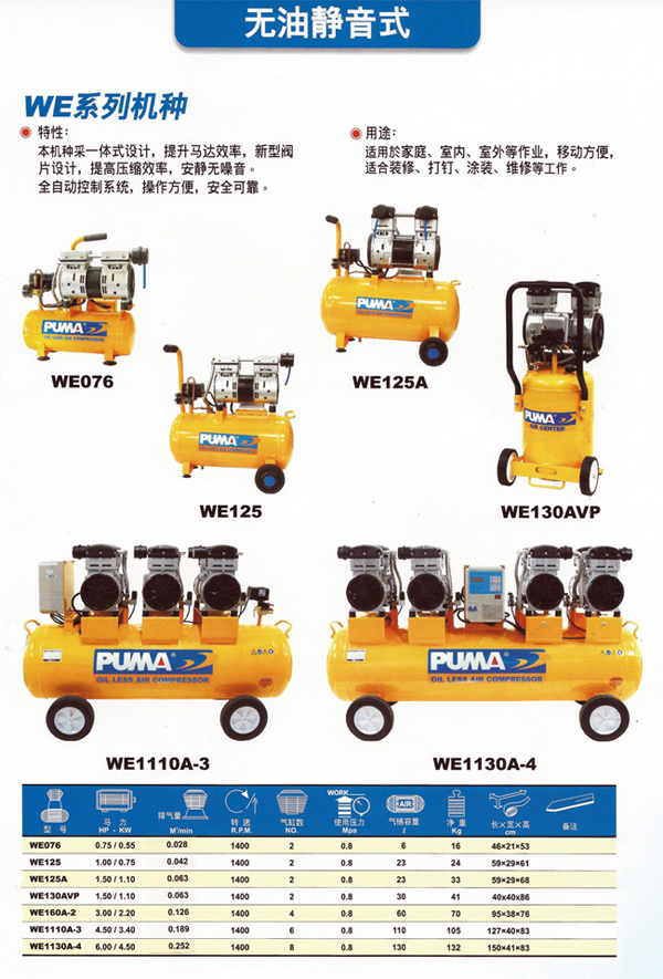 更多..WE125A无油静音式巨霸空压机其它相关产品